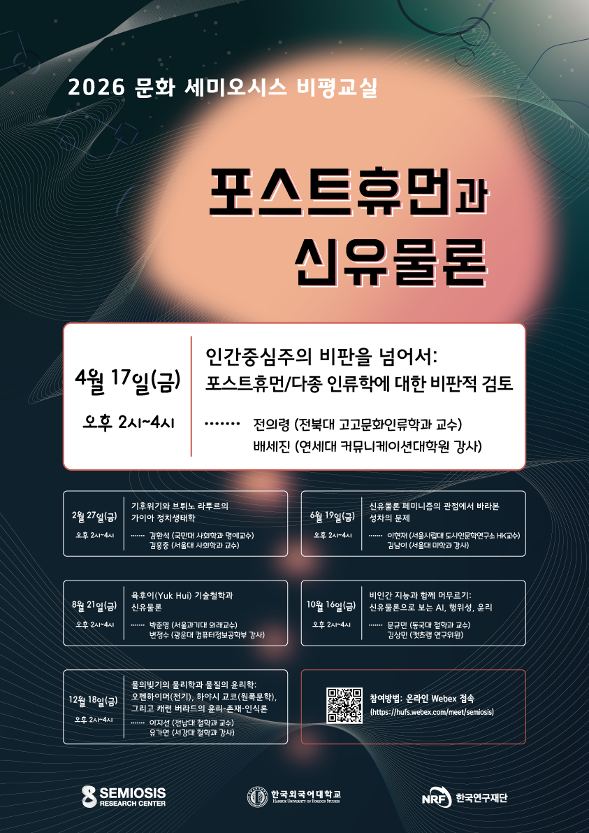 | 한국외대 세미오시스 연구센터, [2026 제2회 문화 세미오시스 비평교실] 온라인 개최 안내 | ||